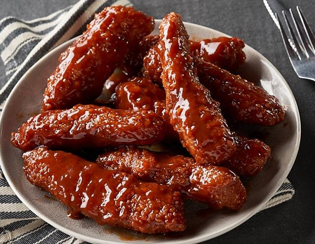 Five tender chicken strips glazed in smoky BBQ sauce – sweet, savoury, and irresistibly juicy.