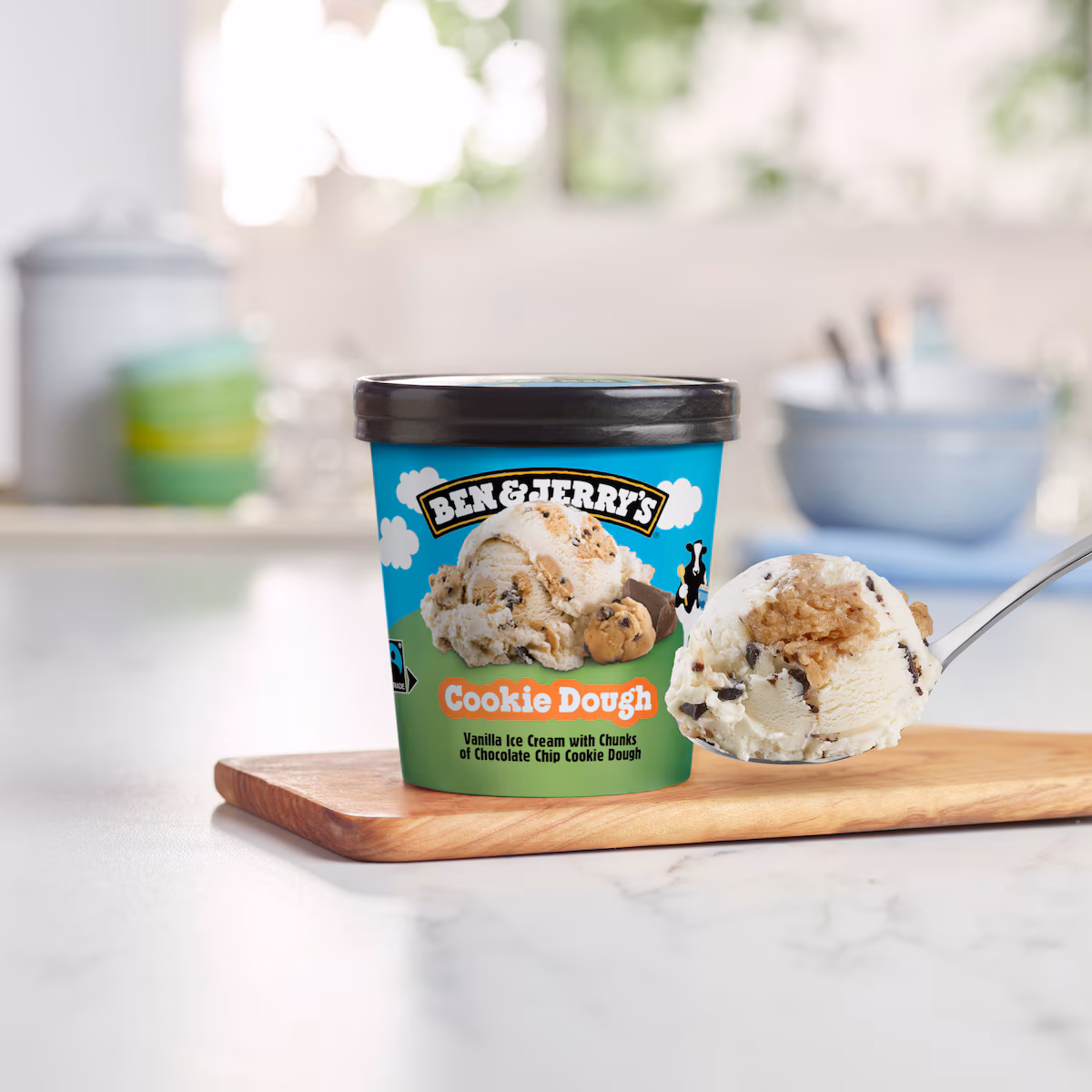 Classic vanilla ice cream loaded with chunks of chocolate chip cookie dough – a spoonful of comfort in every bite.