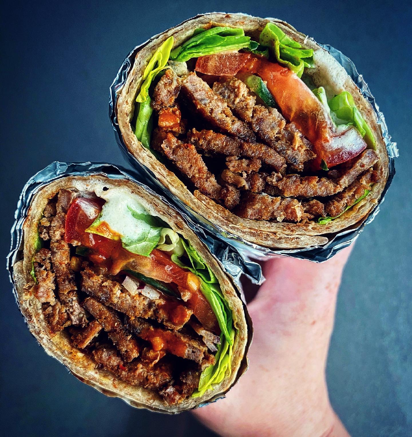 Tender slices of seasoned lamb donner, slow-cooked to perfection and served with fresh salad and sauces.